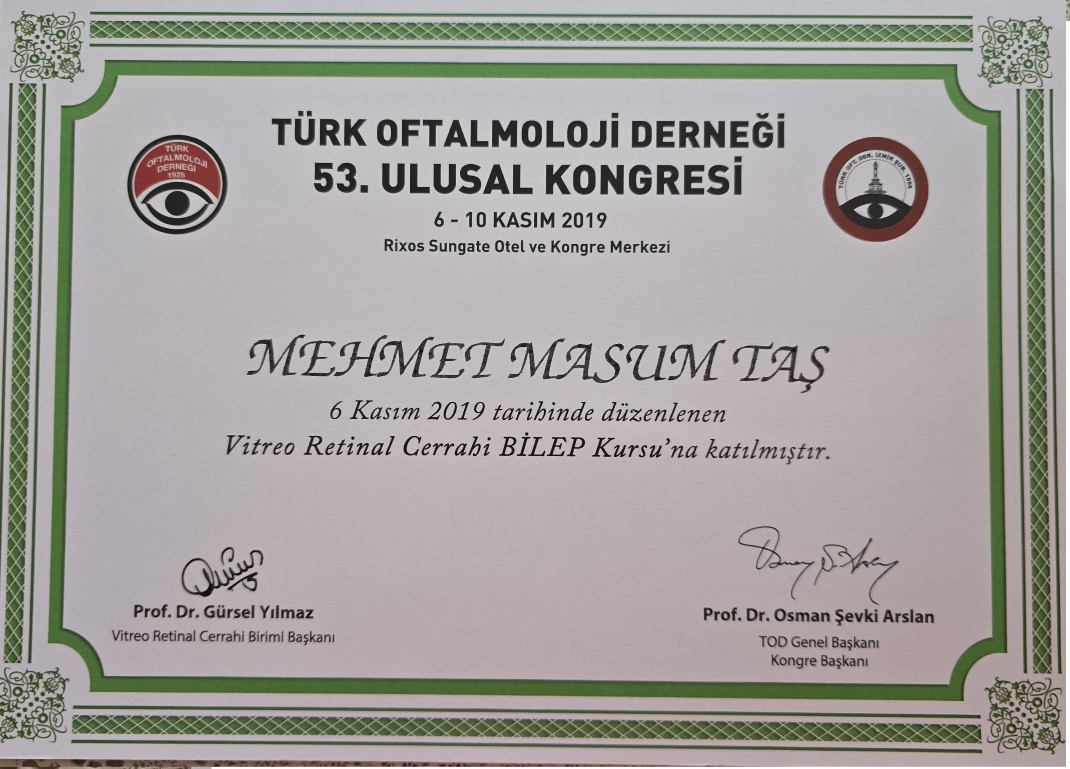 2012-2016 yılları arasında Kocaeli Üniversitesi Göz Hastalıkları Anabilim Dalı’nda ihtisasımı tamamlayarak 2016 yılında Göz Hastalıkları Uzmanı Ünvanını aldım